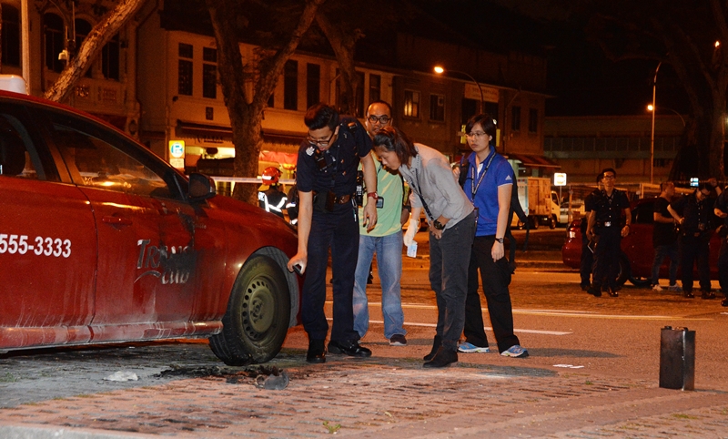 自焚者背靠着停泊的德士车门,点燃自焚,一度大声地发出哀叫声,整个过程持续了三四分钟。
