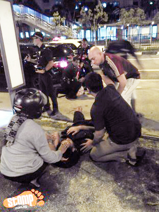 男生说:“事发后,有人立刻下车以皮带制伏德士司机,德士司机倒地,直到警方到场将他逮捕。”