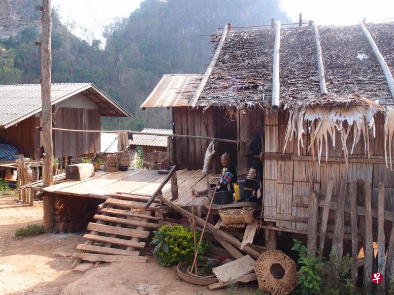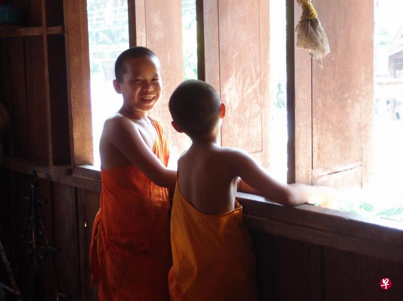 我们却只有时间稍作停留,即沿着公路继续往前,驶入谷底的Mae Lana掸族村落。这个村子明显较具规模,房舍大多为木建筑,还是保留高脚屋的格局,但看上去比较整齐现代,屋顶有卫星接收器。村口有一家小店铺,也有学校、寺庙、民宿。寺庙就叫Wat Mae Lana,与村子同名,也是村子里的社区活动中心。屋顶上一层层镶着精致银边的方形塔正是典型的掸族风格。殿堂为全柚木结构,供奉着几座金色佛像,里面还住着几个小沙弥,好奇地窥探着我们几个远方来客。到这里游玩,一般也可以在民宿里小住几天,健行到三四公里外的几个石灰岩洞。