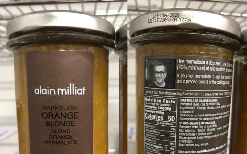 一款Alain Milliat橘子酱或含玻璃碎片 食品局下令召回
