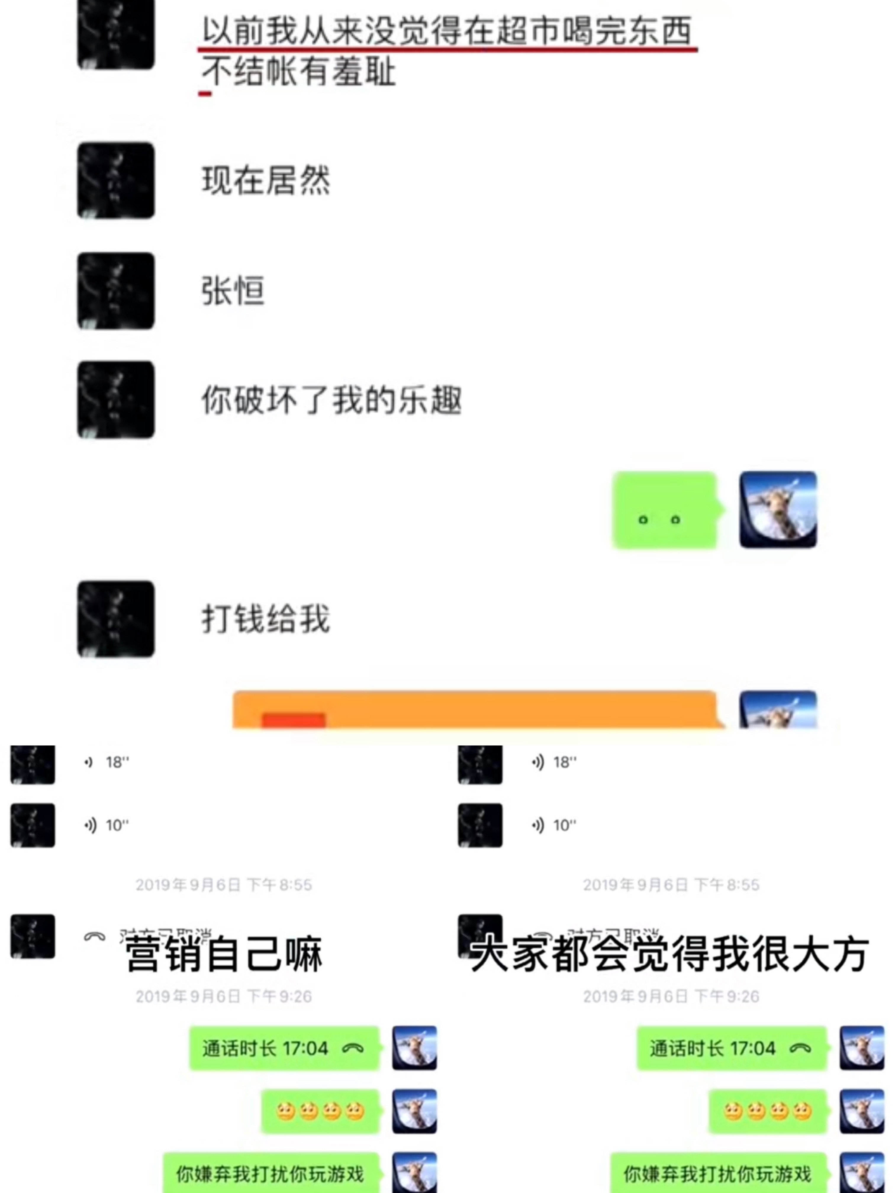2018年的聊天记录显示,郑爽疑似对张恒结账的行为非常不满,“哪里来这么多好传统”“显得我不厚道”,指责张恒“这种钱从没见你省过”。郑爽还说,她在超市吃东西从来不结账,并认为这是一种乐趣, 而张恒破坏了她的乐趣,最后要张恒转账给她。她也称,这是一种营销自己的方式。