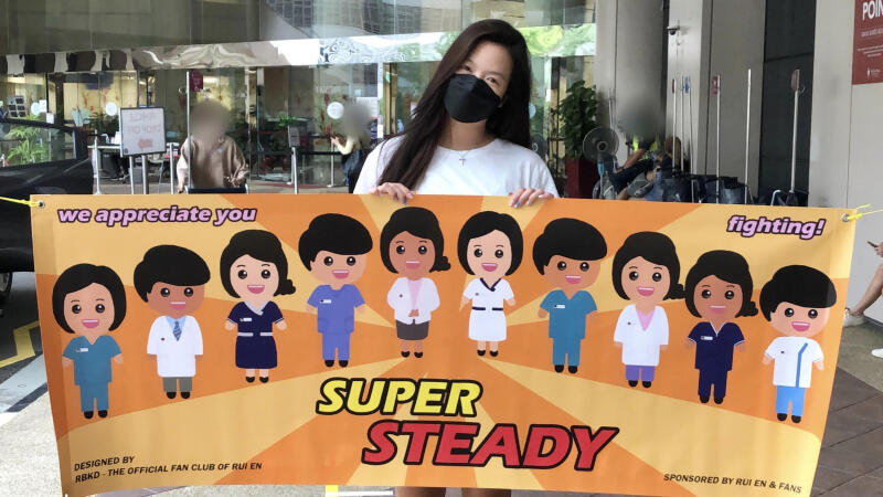 瑞恩也说,自己留意到社区感染人数在增多,心中的恐惧、焦虑和担忧与日俱增。原本她想和以前一样给前线医护人员送上礼包,但碍于防疫措施收紧,只好改变主意送上横幅,希望这些横幅能给医护人员带来笑容:“现在我们所需要的就是微笑。请继续坚强,并确保安全!”