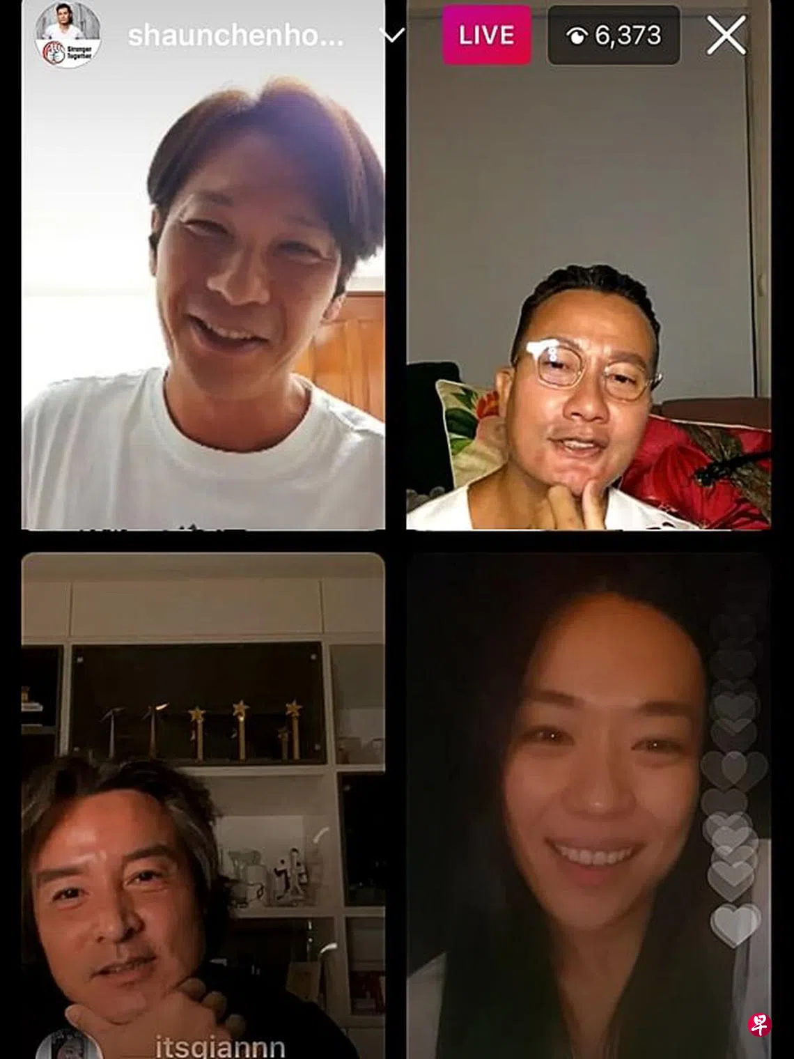 本地阿哥李铭顺和视帝陈汉玮、陈泓宇和张耀栋临时组“顺李陈张”,昨午发图文预告晚上于IG直播连线,四人昨晚9时半首次于IG“合体”畅聊3小时,直至凌晨12时半才下线;期间曹国辉、苏梽诚和DJ粉樱即兴露脸,姚懿珊、张钧淯等艺人上线“围观”,林慧玲在陈汉玮等“千呼万唤”之下过了午夜惊喜连线,视后的大驾光临一度让观看直播的人数冲破6300呢!