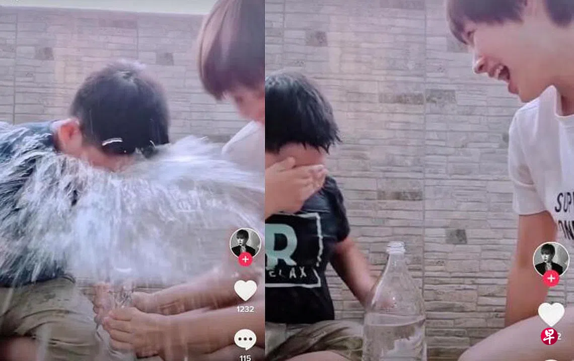 日前雅慧在Tiktok上载了一条视频,视频中她原计划是骗侄子对着装满水的瓶子网瓶口里看,然后她再用力挤压瓶子,水就会喷出来,达到作弄效果。