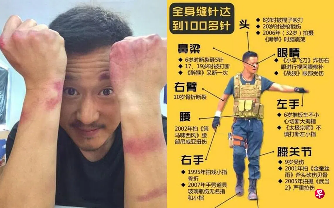 粉丝统计吴京全身缝过100多针,相当恐怖。