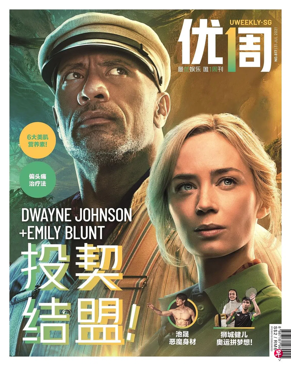 (本地讯)《优1周》最新一期封面人物是好莱坞电影“Disney's Jungle Cruise”(丛林奇航)的主角——Dwayne Johnson(巨石强森)和Emily Blunt(艾米莉布朗特)。两名巨星首次合作一拍即合,除了成为银幕上的新鲜组合,也结下健身房特训情缘,成为好莱坞最新的BFF(Best Friends Forever缩写,指永远的好朋友)。