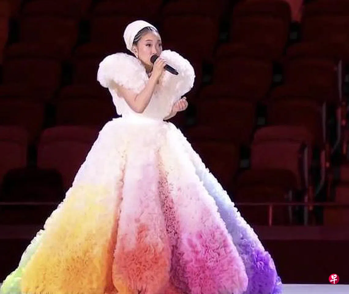 中国网民赞美她是日本国宝,吐槽湖南卫视的歌唱竞技节目《歌手·当打之年》邀请她参加,作为节目中唯一的资深歌手,与华晨宇、周深等新生代人气歌手同场竞技,后来她却被踢馆的袁娅维淘汰,但她在奥运开幕式担当独唱重任,压场的歌唱能力和巨肺般的歌喉,证明比袁娅维厉害。她穿着名设计师的服装,更被形容为“宛如渐层的除尘神器”,是开幕式上一抹华丽的风景。