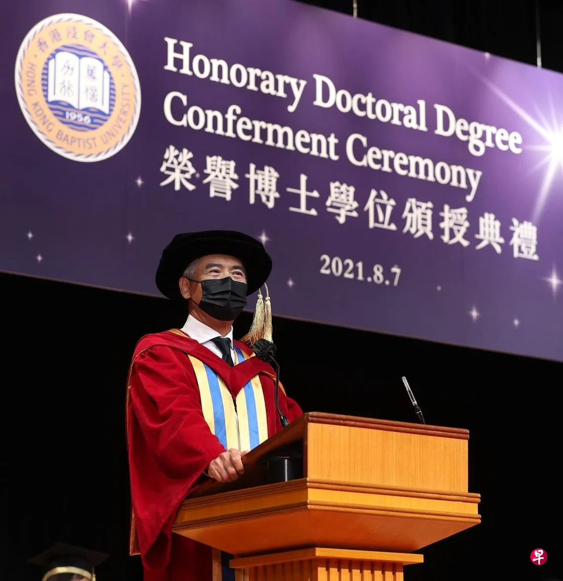 (香港讯)香港浸会大学前天颁授荣誉博士,巨星周润发(发哥)获颁授荣誉人文博士,以表扬他的专业成就以及对全球电影的重要贡献。这是周润发第三度获颁荣誉学位,他曾于1999年获香港演艺学院颁授荣誉院士,于2001年获香港城市大学颁授荣誉文学博士。