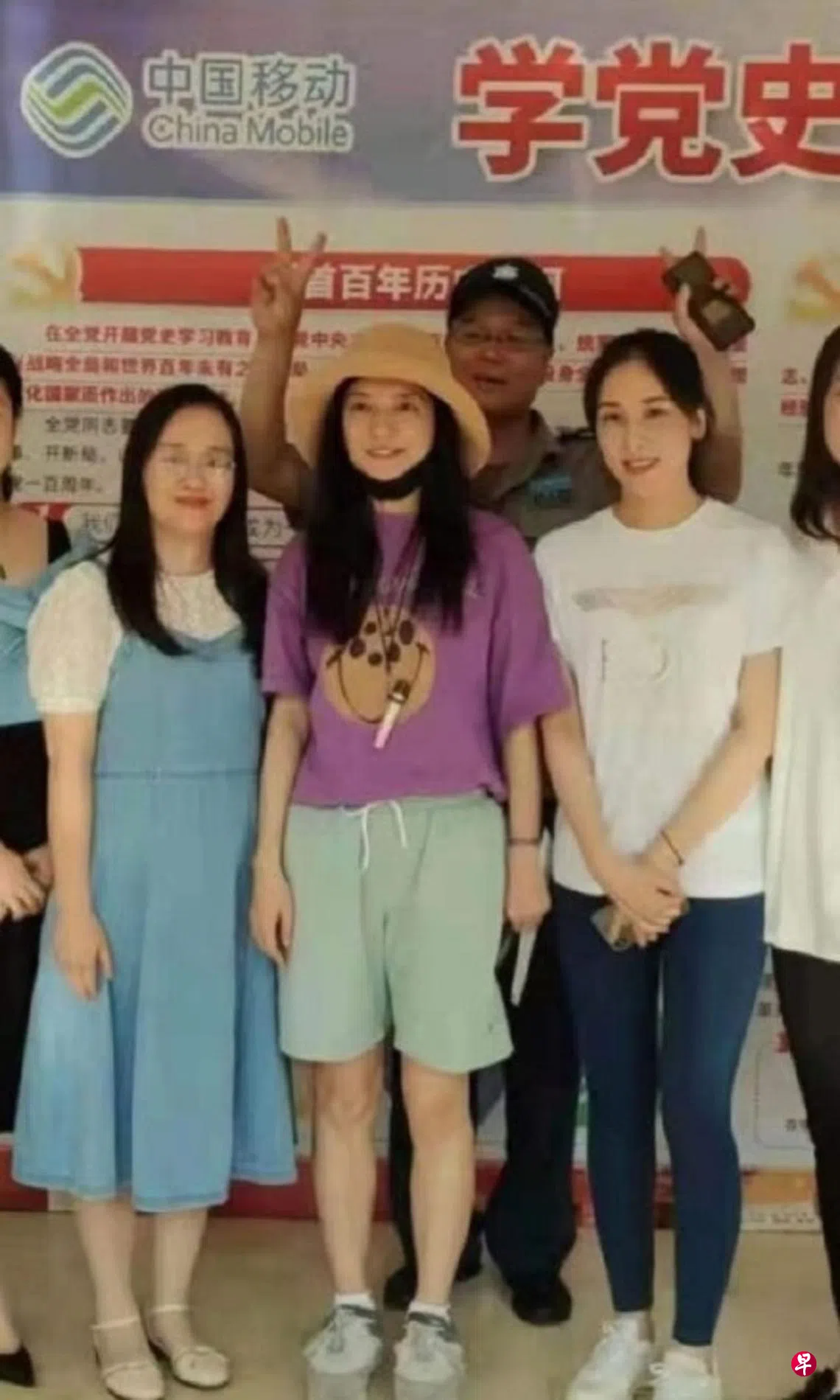 赵薇前天(14日)戴着编织帽,身穿紫色上衣和短裤,模样轻松休闲,在当地中国移动营业厅办事,事情处理完后,也大方和里面的工作人员合照,而她在拍照时拉下口罩,露出整张脸,有说她看起来神情有些疲惫憔悴。