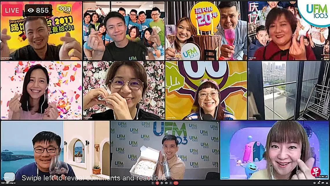 电台UFM100.3一起陪伴听众走过20年,3日迎来20岁生日,为配合“玩FUN 20年”主题,全体DJ和台长洪菁云昨天一早9时45分于UFM100.3面簿连线直播。