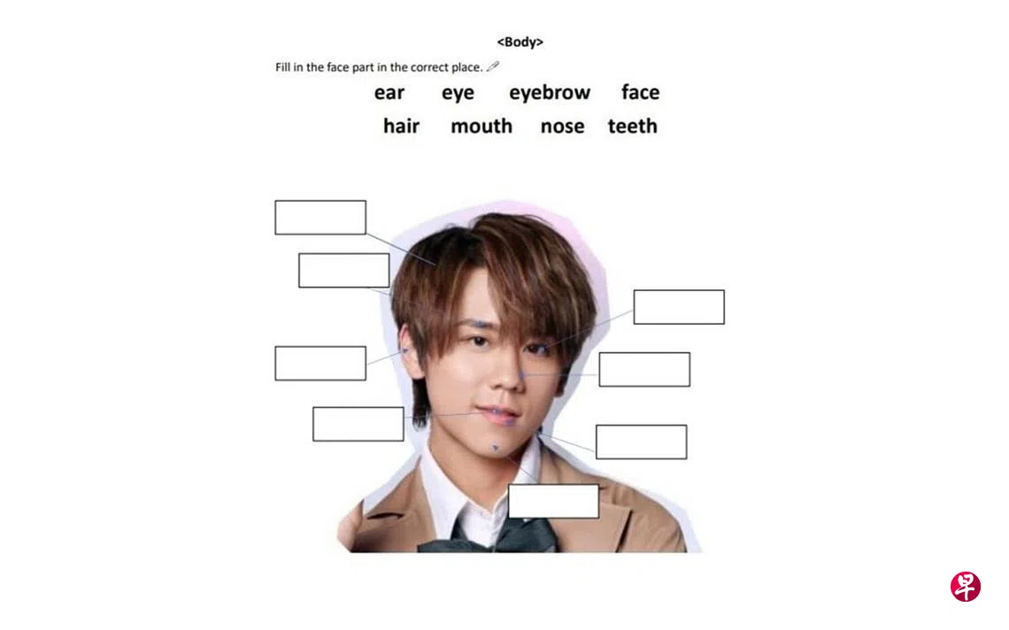 (香港讯)香港男团MIRROR十二位成员现时无论在乐坛、电视圈还是影坛都占一席位,人气绝对不容忽视。一份以MIRROR做题目的小学英文教材近日在妈妈群组疯传,作业用了Anson Lo(卢瀚霆)、花姐和MIRROR十二子等人的照片作选项,要学生填写适当的He、She、It等代词。