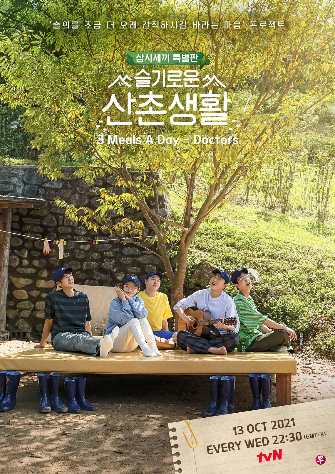 《机智山村生活》可说是罗PD招牌节目《一日三餐》的番外篇,“五人帮”曹政奭、柳演锡、郑敬淏、金大明和田美都,放下手术刀,拿起锅铲、锄头、木柴等,体验自给自足的乡下生活。预告中,大雨来袭,他们还要生火做饭,柳演锡一脸惊讶,田美都一脸苦恼,恐怕连一餐都成问题,还要做三餐?