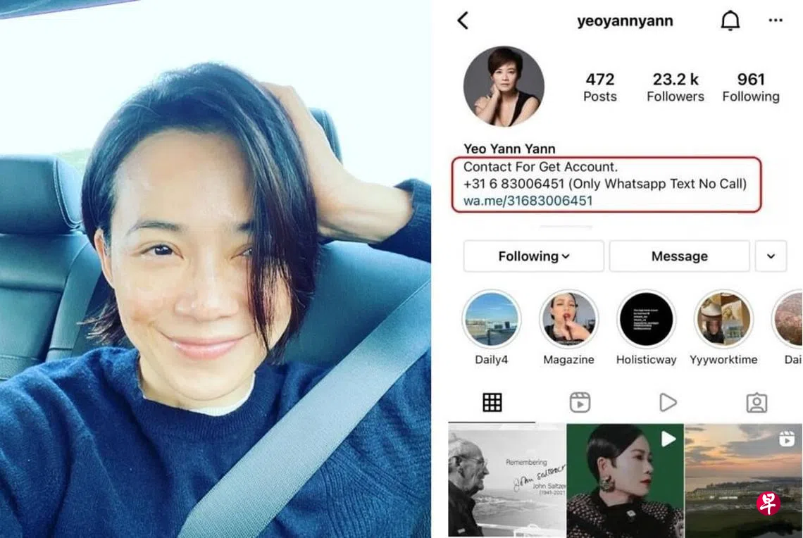 早前,金马影后杨雁雁的社交媒体Instagram(IG)账号遭黑客入侵,不法之徒在主页面的个人信息上,嚣张地留下联络方式进行勒索交易,令她感到不知所措,寻求友人及网民帮助。前天傍晚,杨雁雁成功取回IG账号主权。她以短信回复《联合早报》说:“松一口气。”她也不忘提醒网民:“请大家多多关注网络安全。若收到到短信或电邮要你更改你的密码或资料,一定要仔细检查。”