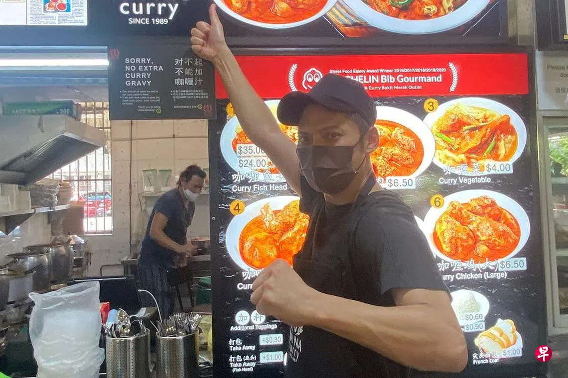 他和朋友一起经营的特许咖喱鸡摊位,位于宏茂桥第一道第340组屋。他说有空就会下去帮忙,股份则不方便透露。