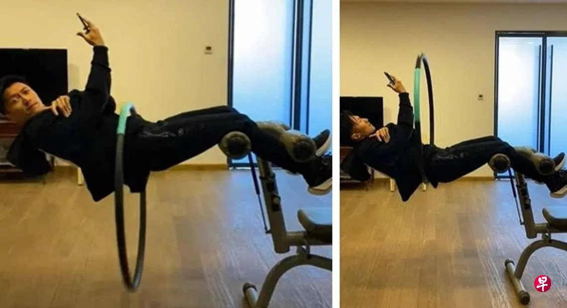 事实上,一般人要维持上半身能平躺在空中已经有难度,必须耗费核心肌群的力量,更别说是要转动呼拉圈,但谢霆锋做起来仿佛一点都不费力。