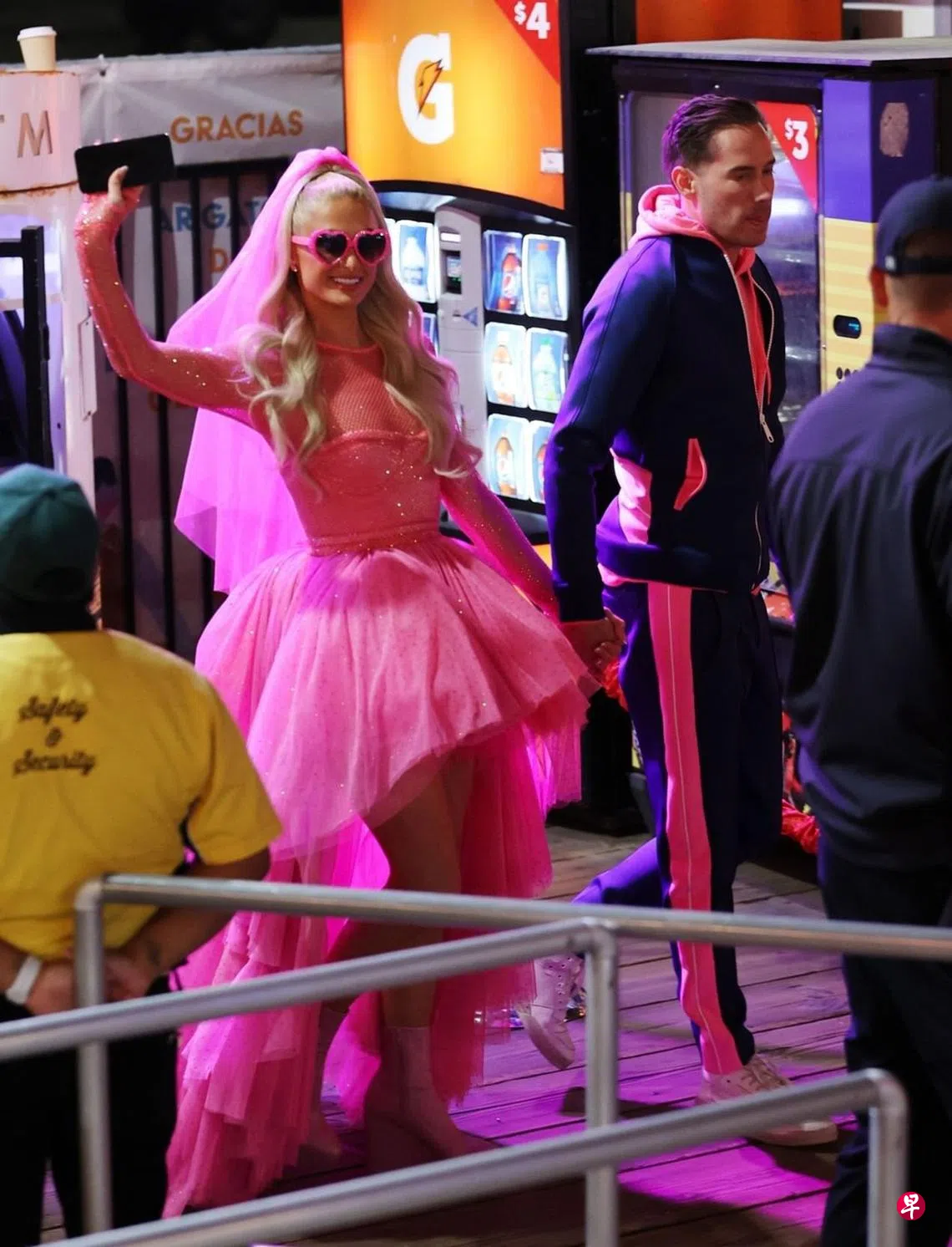 (综合讯)40岁的美国名媛Paris Hilton(帕丽斯希尔顿)在美国时间11月11日出嫁,婚事连办三天,继首日的婚礼后,她和身家一样丰厚的丈夫Carter Reum(卡特雷姆)大手笔包下圣莫尼卡(Santa Monica)码头开派对,码头上的游乐园换上“帕丽斯世界”的招牌,让来宾无限畅玩,而她则换上和婚礼时的高雅白纱完全不同的萤光粉红服装,回归她招牌的“芭比风”,新郎也配合她穿桃红上衣,包括Demi Lovato (黛米洛瓦托)、Billy Idol (比利爱多尔)等都参加了这场派对。