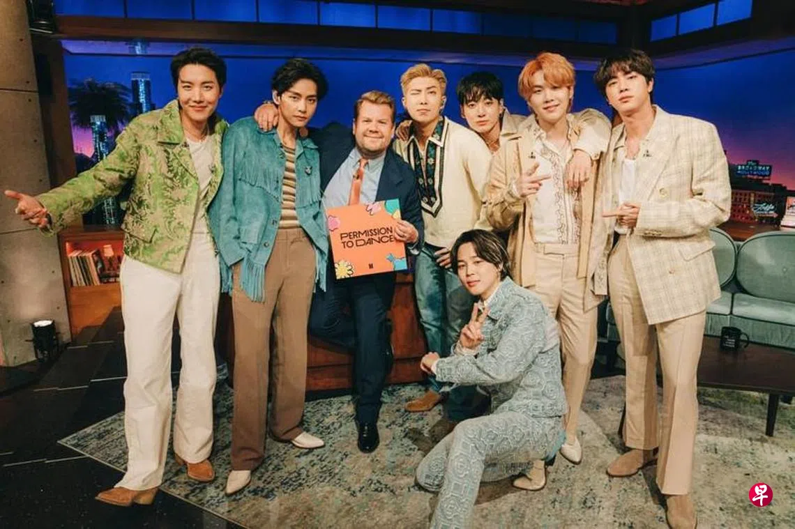 BTS近日在美活动,依旧登上《深夜秀》。BTS毫不避讳谈论此事,队长RM说:“詹姆斯,你因为Army(BTS粉丝名)有点身陷水深火热对吧?”詹姆斯柯登闻言掩面崩溃,成员Jimin拍拍他的肩,还紧紧牵住他的手,接着柯登对失言表达歉意,RM表示接受道歉,化解先前的尴尬,高EQ获赞。