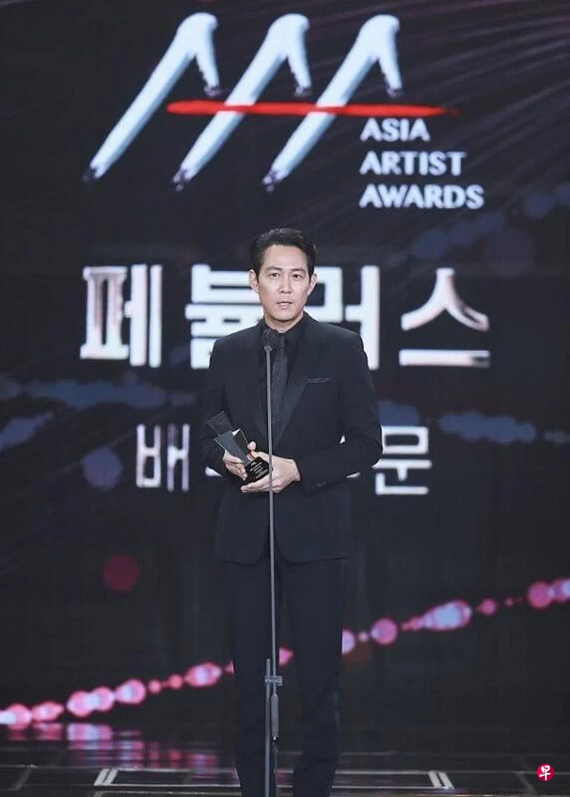 (首尔讯)韩国亚洲明星盛典Asia Artist Award(AAA)昨日(12月2日)在首尔举行颁奖礼,会上颁发多个影视及音乐奖项,全场焦点落在热爆全球的韩剧《鱿鱼游戏》。郑浩妍、“韩美女”金姝怜及“黑帮大佬”许城泰分别获颁人气奖及最佳演员外,因航班延误几乎缺席的李政宰,更夺得至高荣誉的年度演员大奖,《鱿鱼游戏》合共夺得6个奖项成为今届大赢家。