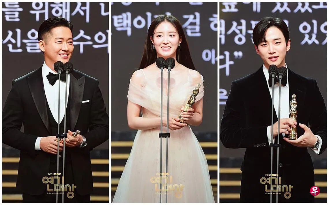 韩国MBC电视台于昨晚(30日)举行年度演技大赏,近日热播的韩剧《衣袖红镶边》抱走8个奖项,成为最大赢家。而年度大奖则颁给《黑色太阳》的南宫珉。