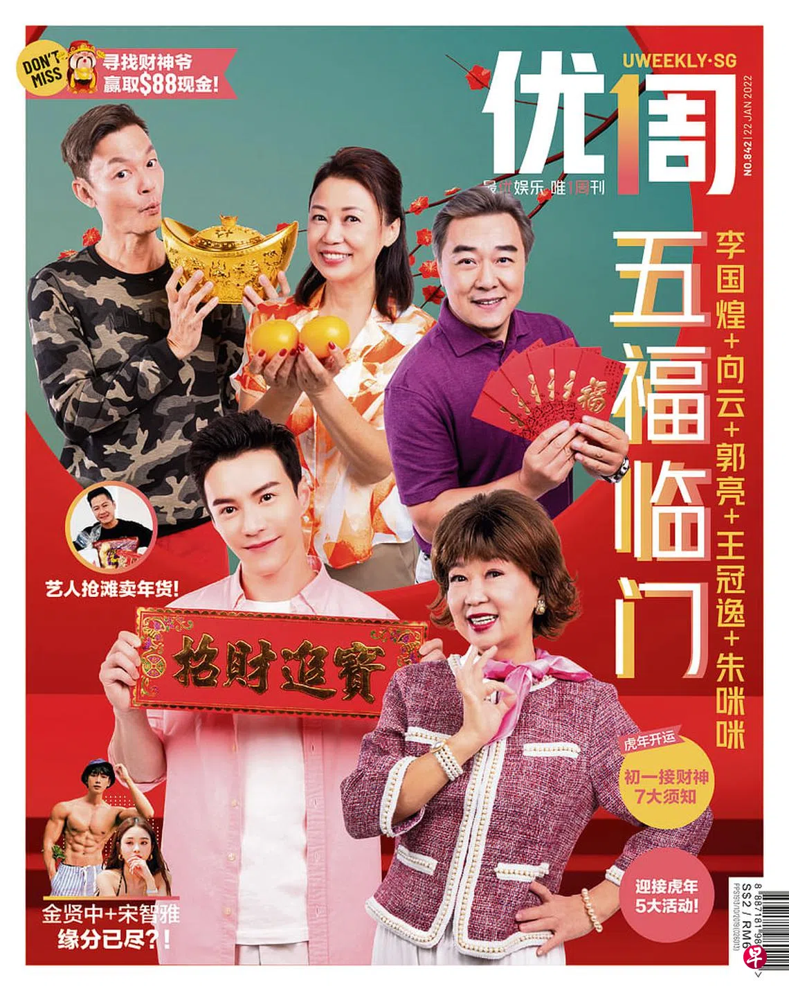 (本地讯)第842期《优1周》封面人物是本地贺岁片《团圆饭》的5名主角李国煌、朱咪咪、向云、郭亮和王冠逸。《团圆饭》找来金马得奖电影《男儿王》的导演王国燊、编剧赖宇涵和男主角李国煌再次合作,外加喜剧前辈与后辈们朱咪咪、向云、郭亮和王冠逸“共襄盛举”,让这部亲情+爱情的搞笑片陪大家倒数和迎接新春佳节。
