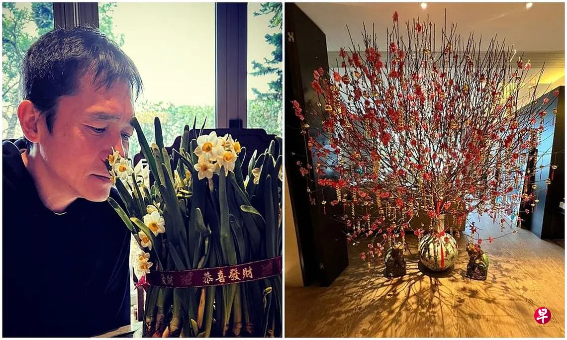 梁朝伟罕见地分享赏花照,除了水仙还有大株到天花板的巨型桃花,令豪宅一角意外曝光。