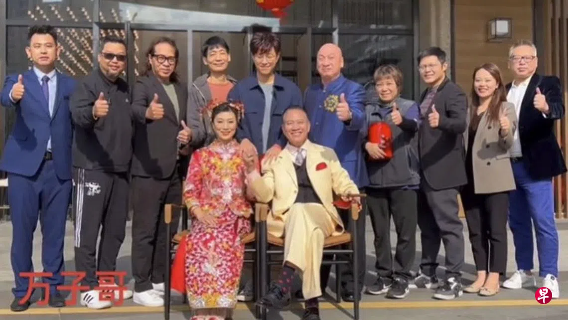 视频中万梓良穿上一身浅黄色西装,倚靠在凳子上,虽然头发花白,但他左手拿着雪茄,右手拖着老婆,大佬风范十足。太太郭明黎同样盛装出席,穿上一身裙褂的她打扮隆重,而他们18岁的儿子万大千就站在父母身后,将双手搭在父母肩膀上,一家三口同框十分温馨。万梓良更高呼:“万子(万的别名)娶老婆,掂唔掂(广东话,行不行之意)?”身后大群兄弟齐答:“掂!”气势十足!