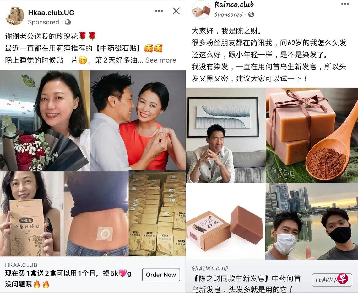 从向云分享的假广告照片中可以看见,她的丈夫陈之财,以及艺人朋友陈莉萍和范文芳,也都是受害者。