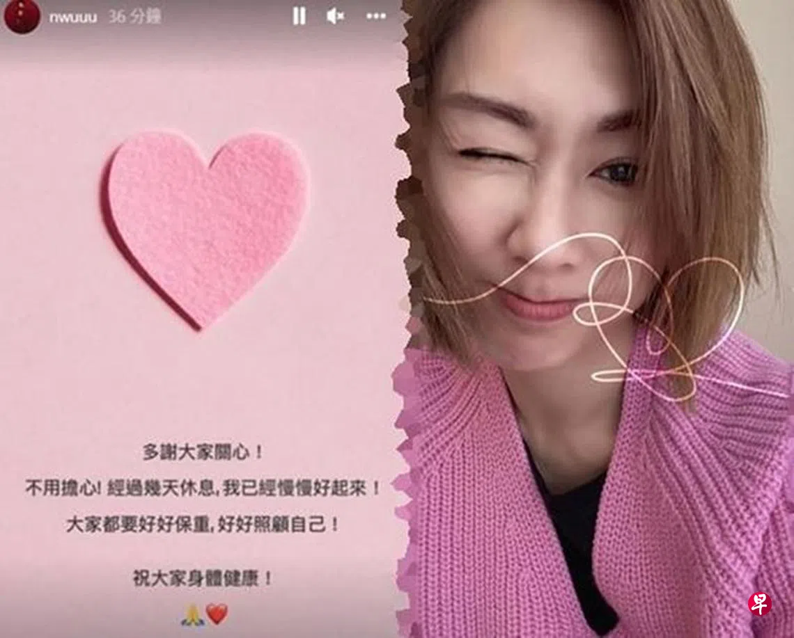 港媒报道正在赶拍新剧《破毒强人》的视后胡定欣已告确诊,胡定欣昨天中午在Instagram限时动态留言:“多谢大家关心﹗不用担心﹗经过几天休息,我已经慢慢好起来﹗大家都要好好保重,好好照顾自己﹗祝大家身体健康﹗”
