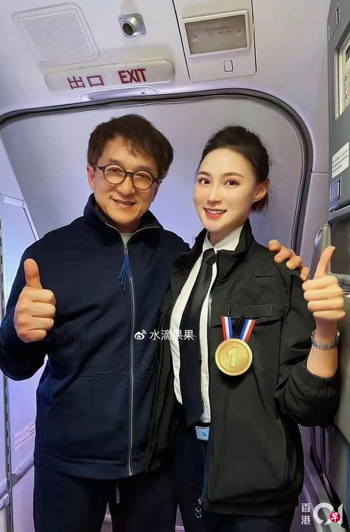 相中成龙打扮低调休闲,合照时一只手竖起大拇指,另一只手轻揽着空姐的肩膀,表现得十分自然,不少网民都大赞成龙完全没有巨星架子,但也有人认为他主动向空姐要电话的行为不太恰当,留言区吵成一片。
