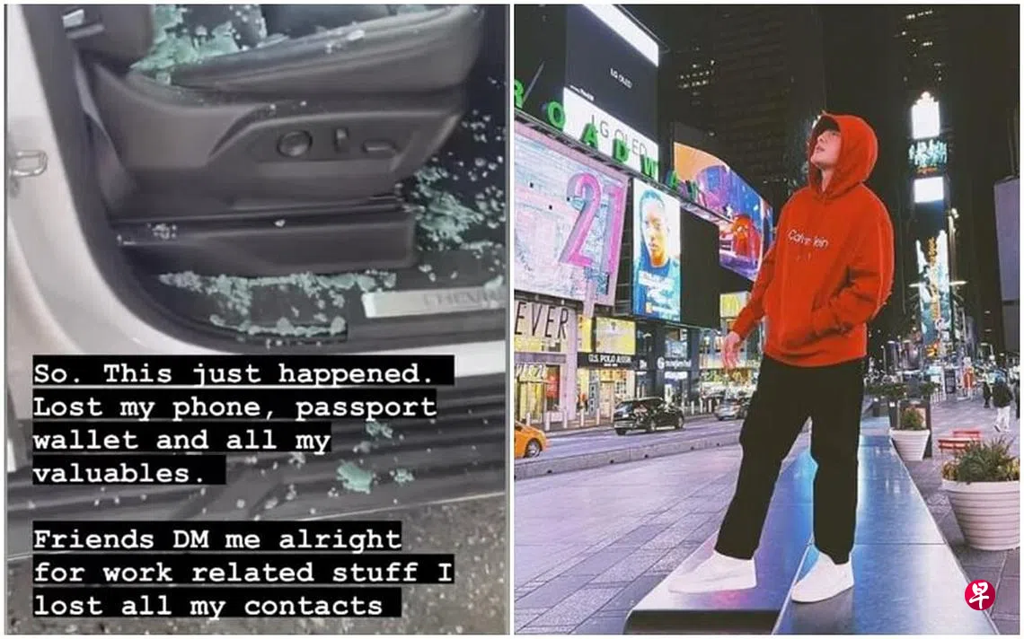 包勋评、Pornsak和江承熹上个月初到美国直播卖货,在当地逗留一个多月。三人本地时间3月9日在IG晒出在旧金山游玩的照片,但到了早上10时许,包勋评在限时动态发了一段显示车窗被打碎的视频,透露手机、护照、钱包和贵重物品都被劫走了。