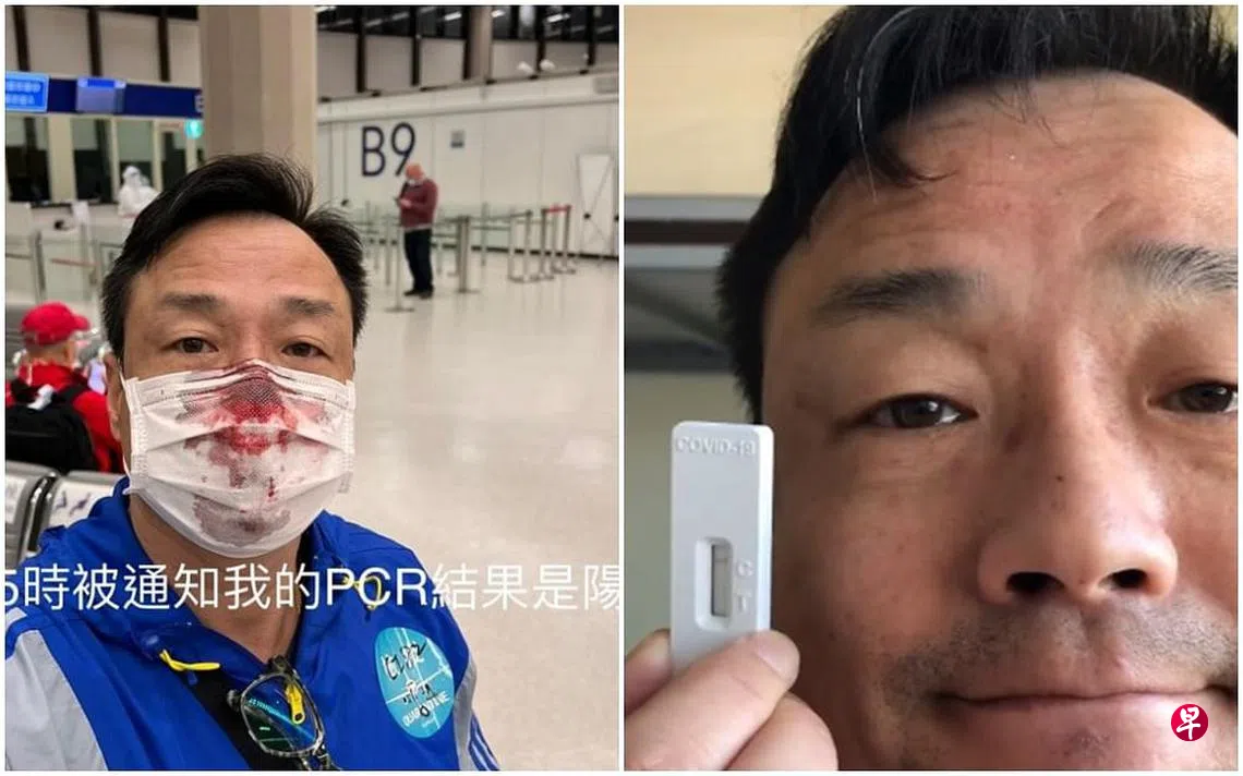 王喜昨晚在面簿连发多文发洩怨气,他透露入境台湾时做PCR检测被捅到流血,写道:“台湾入境做PCR被捅伤,凶手已逃离现场,留下来的人,无一个知道凶手的名字,只知道她来自医院。”影片中可见他人在机场,痛到落下男儿泪,口罩全部沾满鲜血,画面惊悚。