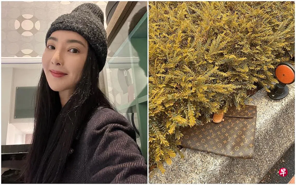 曹格的妻子吴速玲今日(21日)在面簿上分享“离奇”事,她今早一如往常送小孩上课后把车停在路边拿早餐,发现路边草丛中有个名牌包,仔细一看竟是自己的文件包。