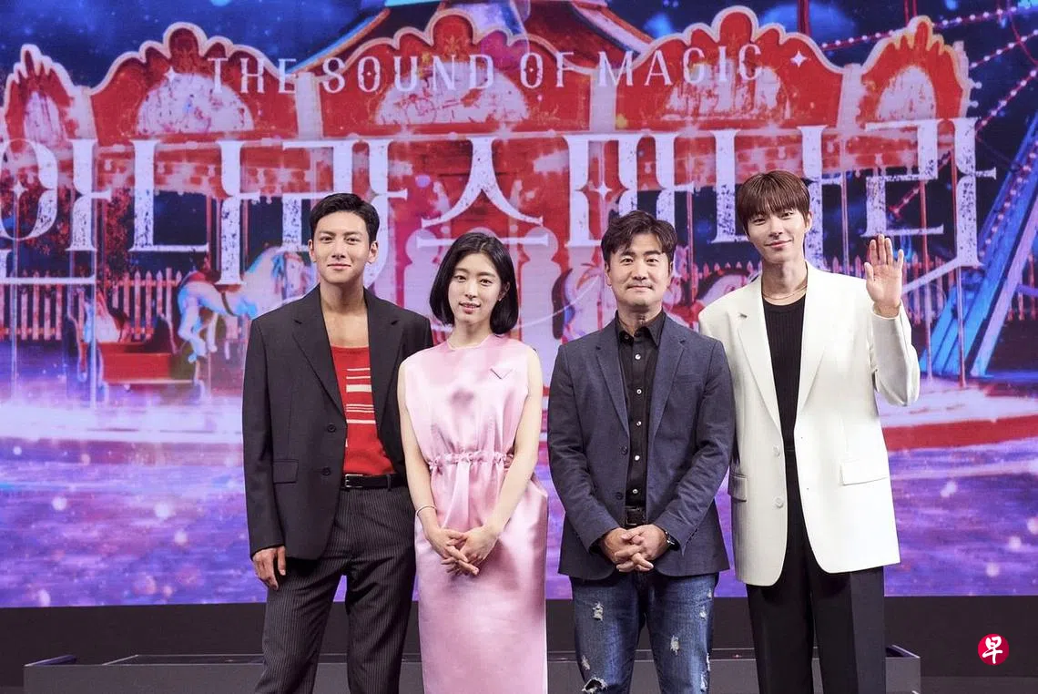 《魔幻之音》三位主角与导演金成允今早(5月3日)在韩国举行记者会,现场的大屏幕放着旋转木马和摩天轮影像,让人宛如置身剧中的奇幻世界。