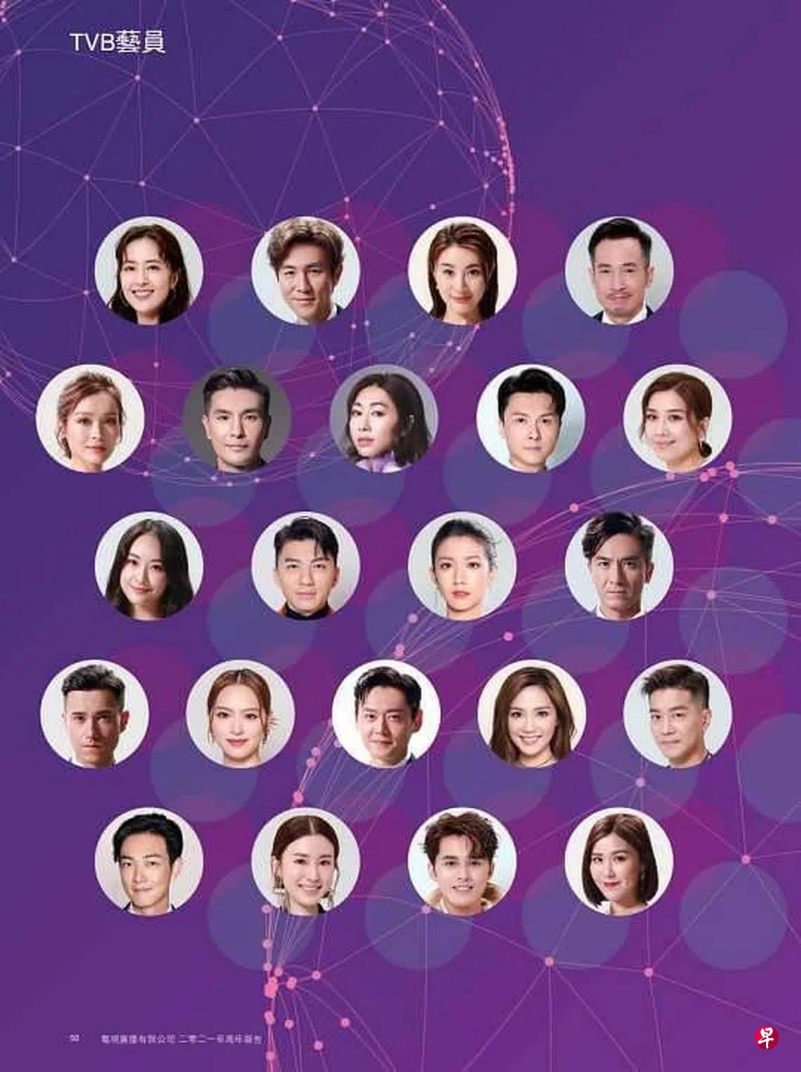 第二行分别是李佳芯、陈展鹏、胡定欣、王浩信和黄智雯。李佳芯被指签包薪合约,所以剧集、综艺、收费台代言人以及平面广告全部都要做。