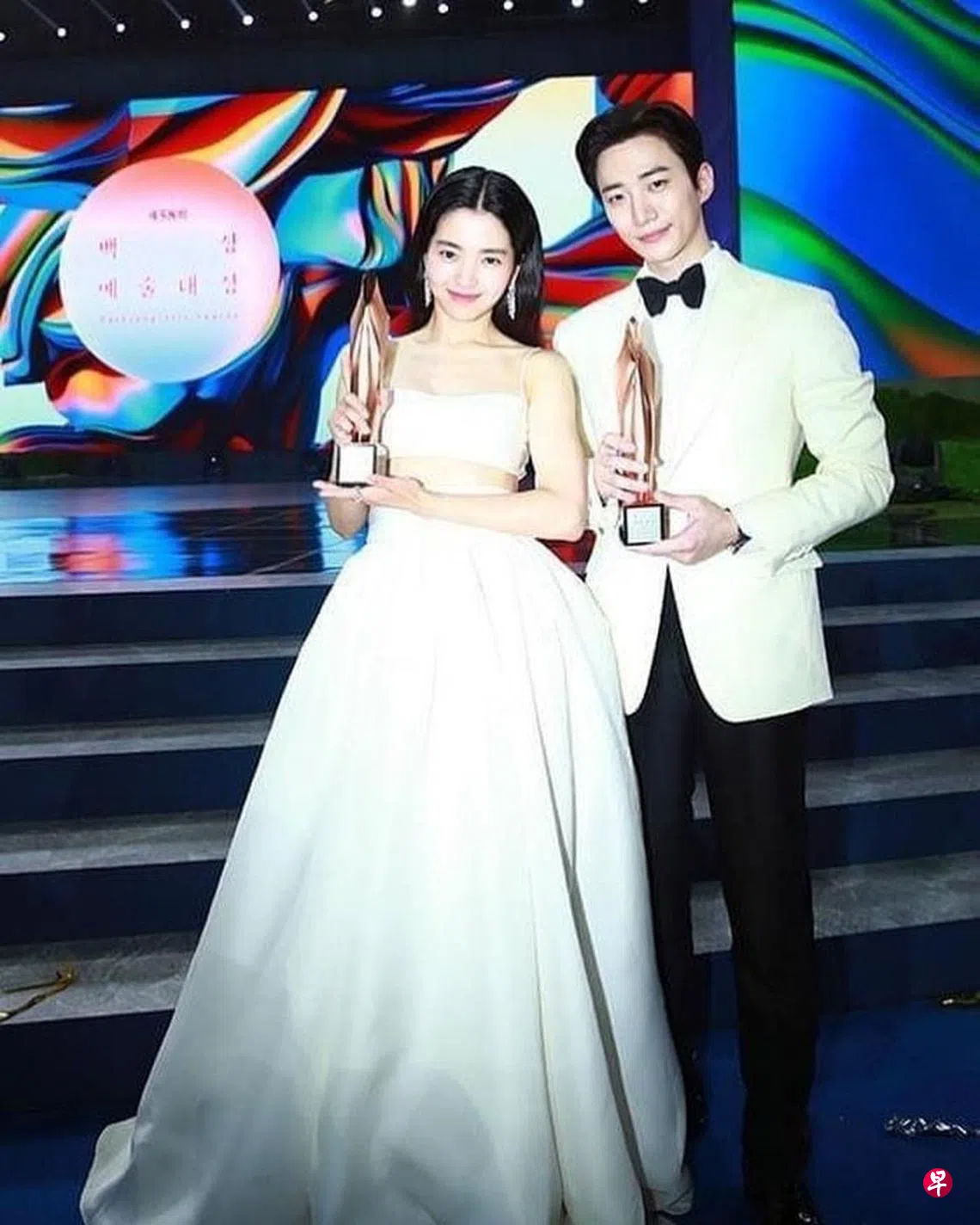 李俊昊和金泰梨早前才以高票夺得百想男女人气奖,如今获封视帝视后,李俊昊一上台就坦言很想拿到这个奖,他感谢剧组所有人员、家人及粉丝,承诺“往后要做得更好”。
