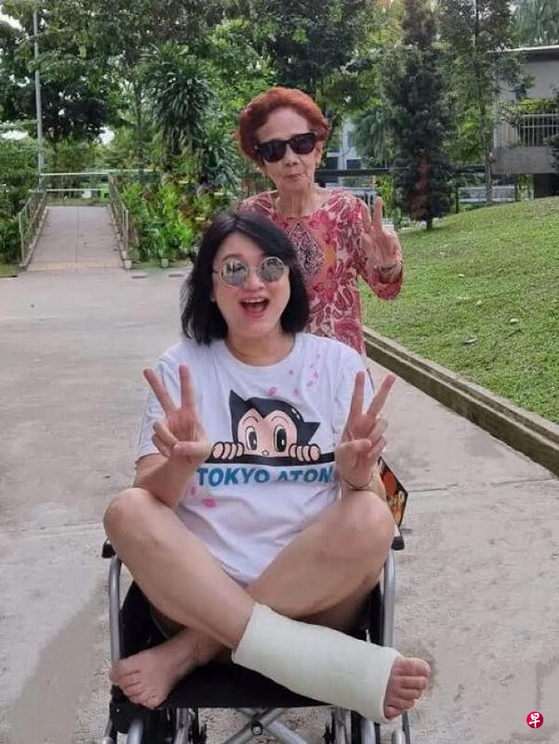 说来母女皆“伤”兵,莉萍透露,陈妈妈去年在家门口不慎跌倒,肩骨、靠大腿处骨裂,为了日后能自由行走,医生建议动手术,“妈妈一听就毫不犹豫说‘OK’,爽爽快快动了手术,疫情期间住院两个月,去年12月圣诞节终于出院……”