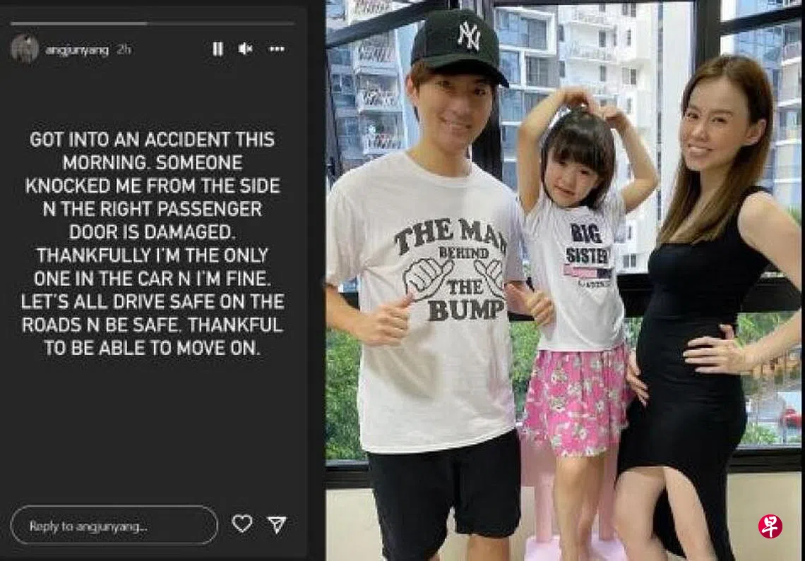 开车遇车祸,本地歌手洪俊扬庆幸妻女不在场。