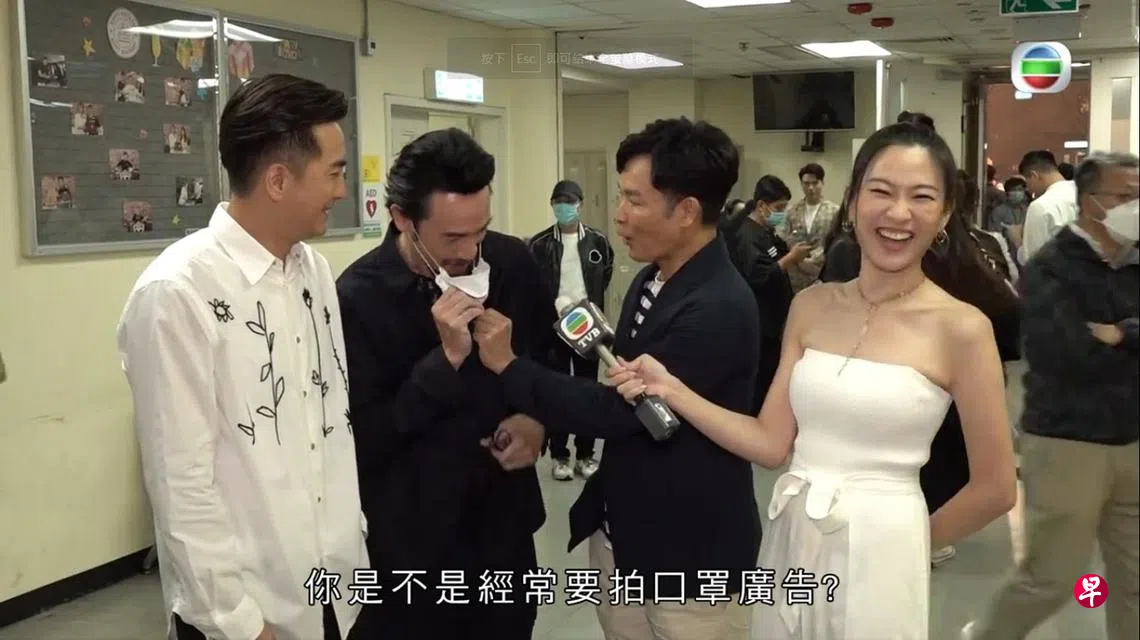 曾为保护家人而宁可睡阳台、在家长时间戴着口罩的陈豪,当天出席时也多戴着口罩。当他与马国明和郭晋安一起接受《东张西望》的访问时,被问及想接更多广告赚钱,郭晋安突然伸手拉下陈豪的口罩问:“你是不是整天要拍口罩广告呢?你是不是想接拍口罩广告?”陈豪顿时显得有些尴尬,他一边自行脱下口罩一边说:“OK给大家看下。”郭晋安见状,兴奋地对镜头说:“Yeah!我终于脱下他的口罩了!”