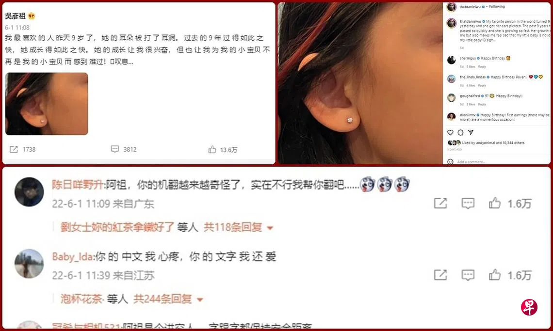 吴彦祖日前在微博发文,为女儿已九岁这件事感叹发文,但却引来网友在留言区回应,吁吴彦祖不要再用翻译机,更大叹“你的中文我心疼”!