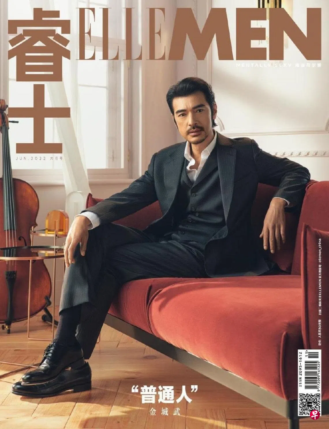 该杂志分享封面照,写着“‘普通人’金城武”,金城武则穿着西装和皮鞋,并留了胡子,散发满满的魅力。