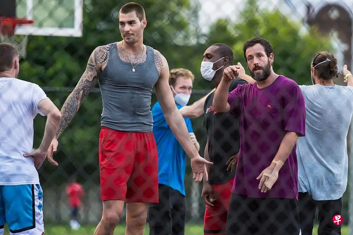 出道超过30年的桑德勒低调讨喜,非常适合角色“中年、窝囊、事业困顿”的人设。他面无表情、喃喃自语式的表演时常能让观众“含着眼泪笑”,是本片理所当然的演技担当。而NBA现役球员Juancho Hernangomez(胡安·埃尔南戈麦斯)球星自带的强大气场,加上高大敏捷的身形,俊朗酷炫的面庞,也成功锁定不少观众的目光。电影中新奇独特的训练方法,在好莱坞娴熟的运动镜头组合下让观者热血沸腾。