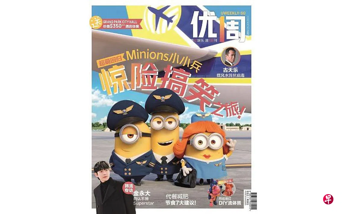 (本地讯)最新一期《优1周》的封面人物是续集电影《小小兵2:格鲁的崛起》(Minions: The Rise of Gru)的小小兵团(Minions)。《小小兵2》将在本周四(30日)上映!小小兵团的Stuart、Kevin、Bob和新成员Otto,除了继续“招牌式”的误打误撞闯祸行为之外,还首次以机长、空姐造型等,肆无忌惮地大发“笑”功,登峰造极,可爱无极限!