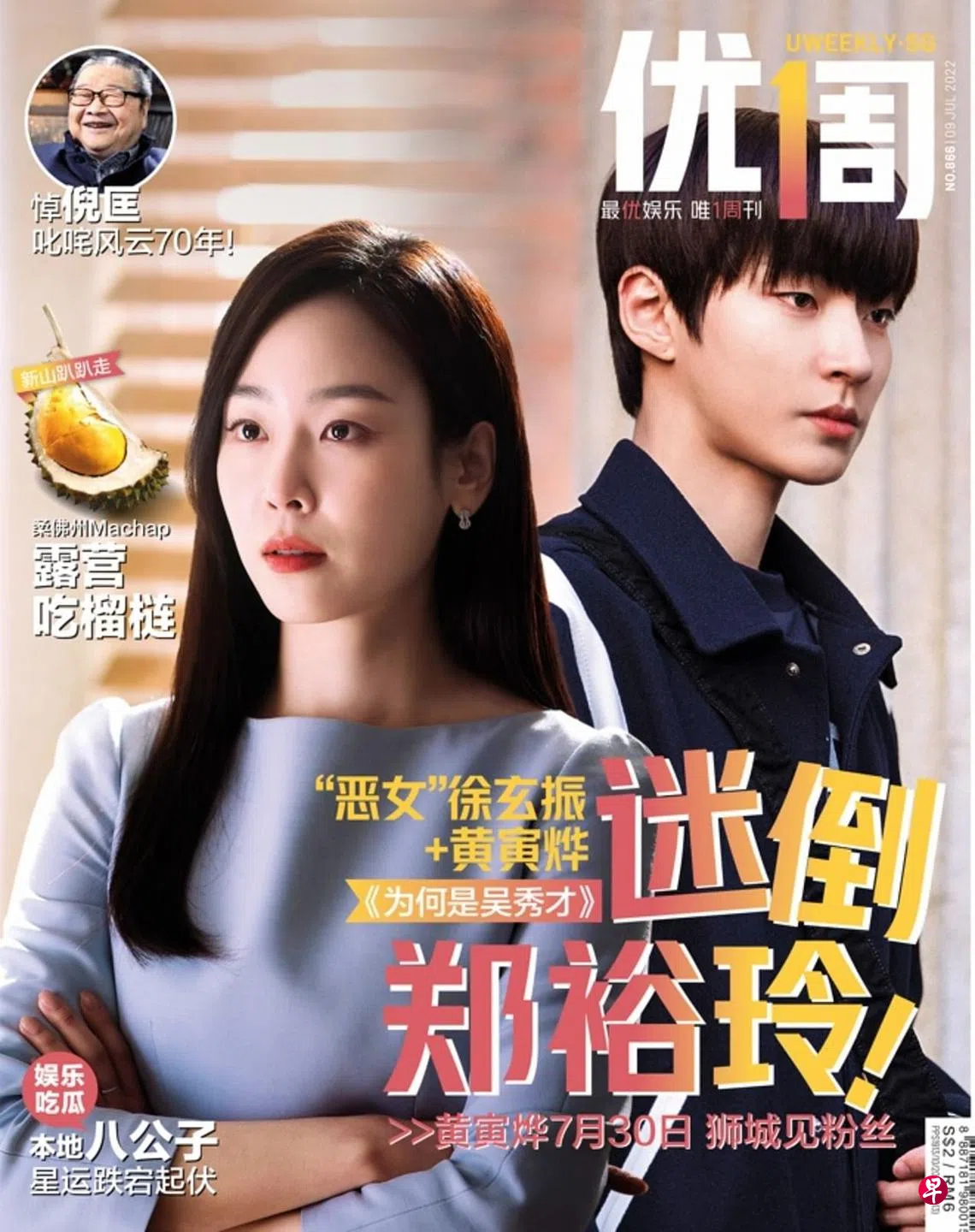 (本地讯)》第866期《优1周》8日出街,封面人物是热门韩剧《为何是吴秀才》的男女主角徐玄振和黄寅烨。“爱情剧女王”徐玄振这次在剧中大玩颠覆,挑战演出冷酷无情的王牌女律师吴秀才,恶女形象又美又飒,凭强大破格演出成功撑起整部剧,加上悬疑刺激的剧情节奏明快,开播以来收视、口碑双赢。