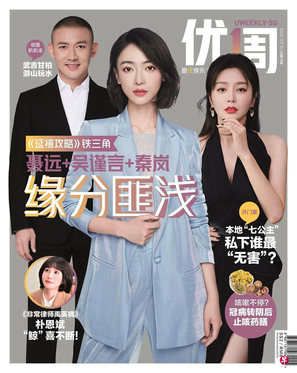 (本地讯)第867期《优1周》今天(15日)出街,封面人物是《延禧攻略》的铁三角吴谨言、聂远和秦岚。他们四年后联手演出《传家》,秦岚和吴谨言终成亲姐妹,“帝后CP”聂远+秦岚、韩庚+吴谨言两对有情人“先婚后爱”,都是话题爆点。