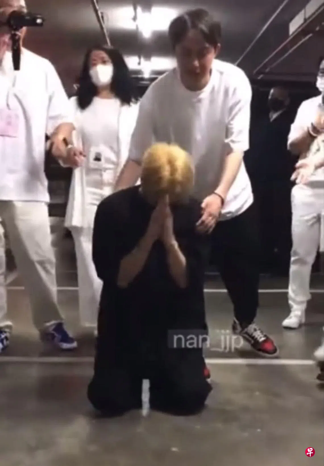 (综合讯)韩团Got7成员王嘉尔这阵子在泰国演出,所到之处都有大批粉丝追随,昨天(21日)网上疯传一视频,王嘉尔从地下停车场走出,见到粉丝后直接跪地行大礼,身边的助理和保镖想拉他起来都被他婉拒,他随后双手合十对粉丝表达感谢之意,大约跪了15秒才起身离去。