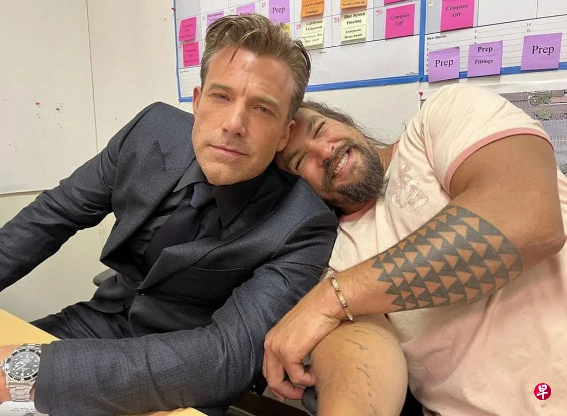 近来有影迷在华纳片厂的游园之旅,竟然瞥见艾佛列克和“水行侠”Jason Momoa(杰森莫玛)在拍戏,莫玛随后在社媒发布两人的开心合照,似乎是在华纳兄弟片厂的会议室里,看来在庆祝两人的重逢,他还写下“布鲁斯和亚瑟的重逢”。