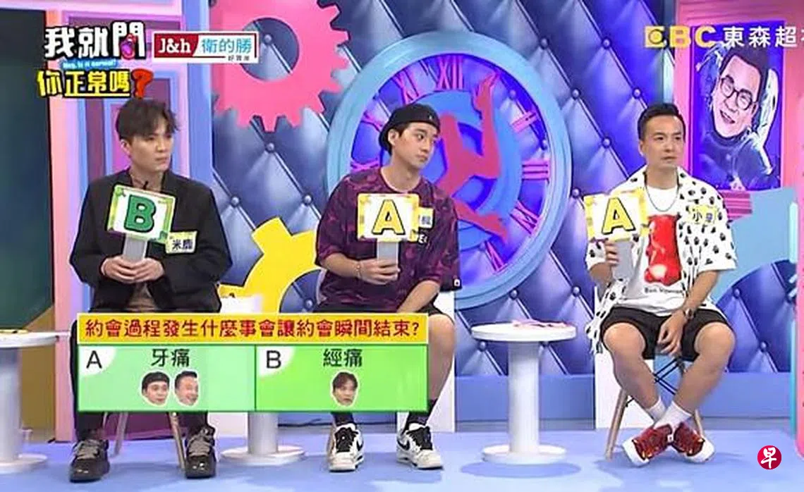 小钟说,他找了借口上厕所,想办法用麻糬粘回去,因为他还不想结束约会。谁知道他回座用餐,吃没两口,假牙又被咬出来了。他只好跟已经发现真相的约会对象说:“我不行了,牙痛”,赶紧逃离现场。他描述尴尬过程引起哄堂。