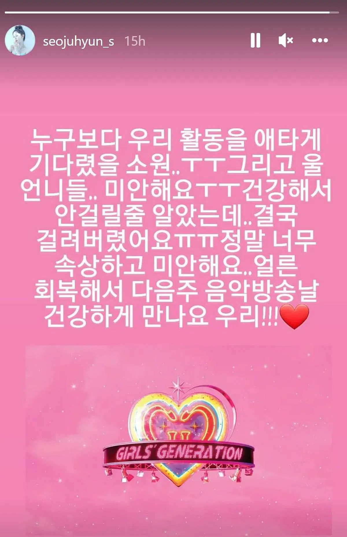 徐玄自己也发文表示:“比任何人还要期待我们活动的SONE(少时粉丝名称)…还有姐姐们…对不起,一直以来都很健康,还以为不会染疫,结果还是确诊了,真的非常伤心非常抱歉。但是我会快点恢复健康,下星期音乐节目见!”