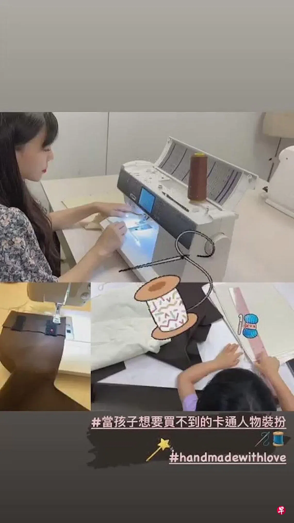 李靚蕾日前在社媒更新动态,分享近照,照片中可见她正在用缝纫机亲手为孩子缝制衣服,并标注:“当孩子想要买不到的卡通人物装扮”以及“Hand Made With Love”(亲手用爱造),她的女儿就陪伴在旁期待着妈妈的爱心制成品,画面温馨。