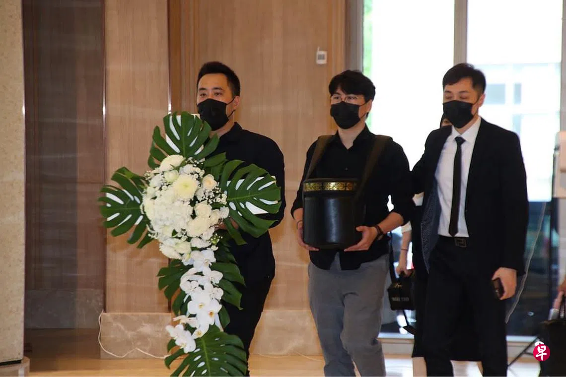 根据习俗,夫妻不能相送至火葬场及墓地,但是Gary却不忌讳,亲自捧骨灰罐,送别挚爱。